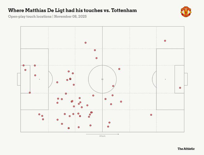 他的触球点分布图显示了一名覆盖范围极广的球员,这使他作为阿莫林阵容中本赛季英超唯一打满990分钟(比布鲁诺-费尔南德斯还多8分钟)的球员记录更加引人注目。