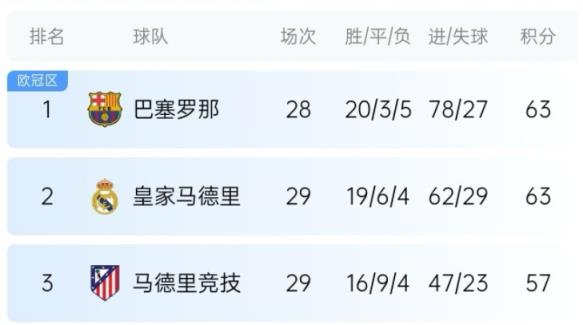 目前西甲争冠形势十分激烈,本场赛前巴萨已取得西甲8连胜,少赛一场与皇马同积63分,马竞则已经落后6分掉队。